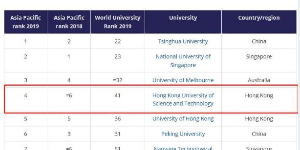 Congratulations to HKUST for moving 2 spots up to the 4th on Times Higher Education Asia-Pacific rankings 2019. The new ranking recognises HKUST as Hong Kong's No.1 university, in terms of teaching, research, citations, international outlook and industry income.