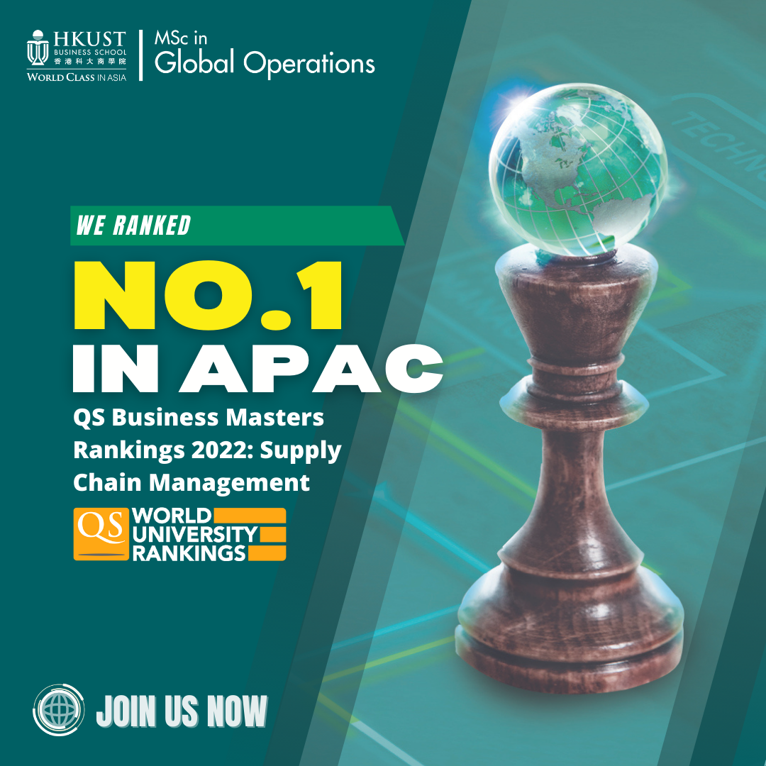 We are excited to announce that the #HKUST MSc in Global Operations program (HKUST MSGO) ranked the 1st in the Asia Pacific Region, and the 15th worldwide in the latest #QS Business Masters Rankings: Supply Chain Management!